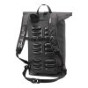 Daypack aus PU-beschichtetem Cordura-Mischgewebe mit angenehmer Haptik; in 2 Größen erhältlich; Rollverschluss mit Schnellzugriff; ergonomische Schulterträger und eingeschweißte TPU-Rückenpolster mit Ventilationskanälen; Fronttasche (nicht wasserdicht); Organizer mit Innentaschen; gepolstertes Fach für Notebook/Tablet; Schlaufe für optionales Rücklicht; Halter für Bügelschloss, Tragegriff; abnehmbarer Brustgurt und Hüftgurt; Reflexlogo.