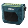 Wasserdichte Lenkertasche für E-Bikes aus PU-beschichtetem Nylongewebe; integrierter LED-Streifen für zusätzliche Sichtbarkeit (Stromzufuhr über Powerbank möglich); seitliche Aufnahmen für handelsübliche Flaschenhalter (geeignet für Flaschen bis zu 0,75 L); magnetischer Taschendeckel mit Klarsichtfach für mobile Endgeräte – Geräte mit Touchscreen können im Deckelfach bedient werden; flexible Außentasche; Tragegriff; Reflektor; Innentasche mit Reißverschluss; maximale Zuladung 5 kg.